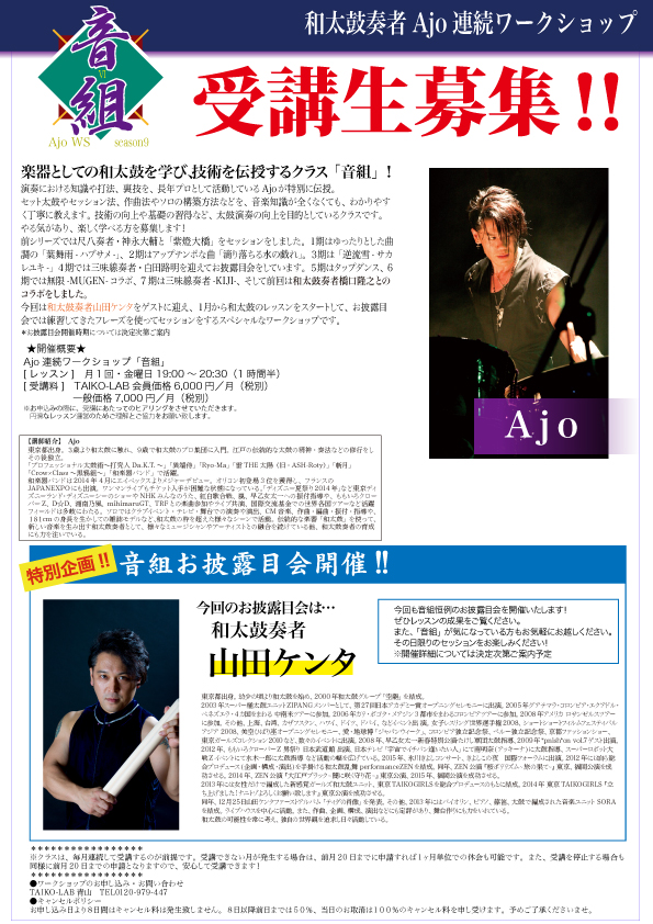 和太鼓奏者Ajo連続ワークショップ