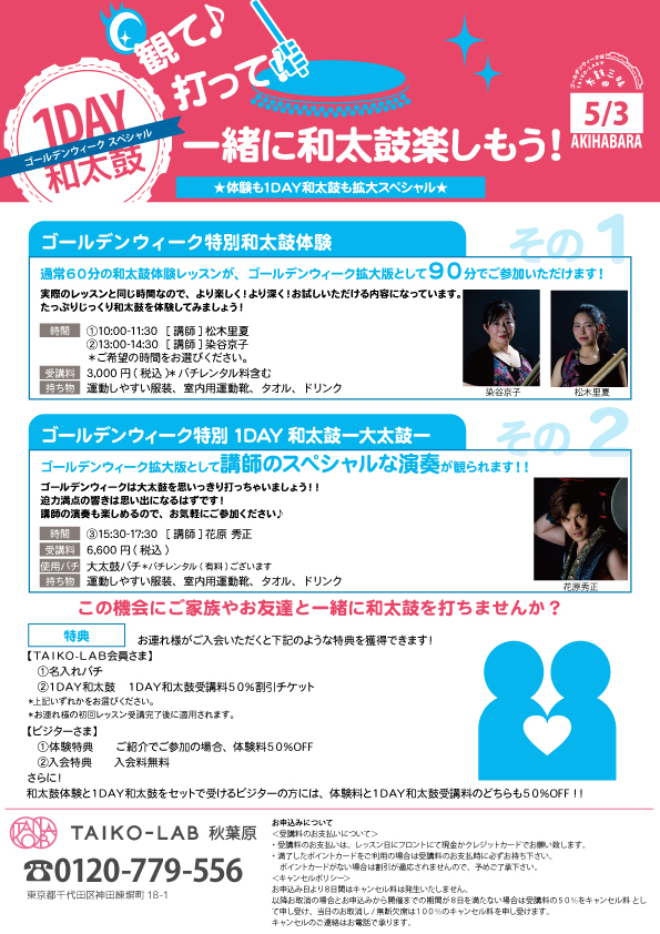 TAIKO-LABで楽しいゴールデンウィークを一緒に過ごしませんか!