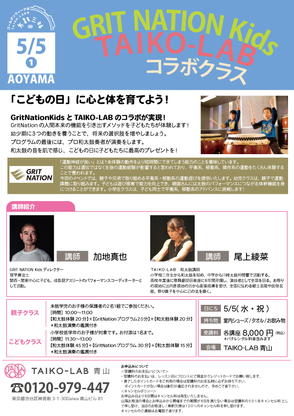5/5(水・祝)❶GritNationKids×TAIKO-LAB コラボクラス