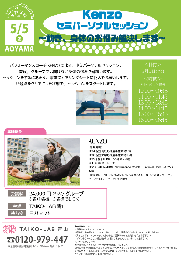 5/5(水・祝)❷Kenzo セミパーソナルセッション