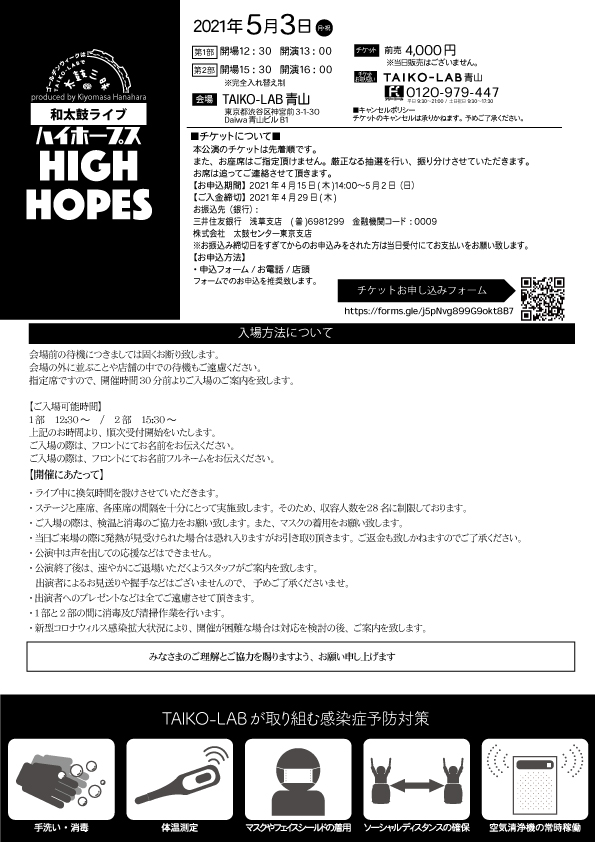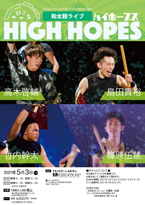 5/3(月・祝)和太鼓ライブ「HIGH HOPES」