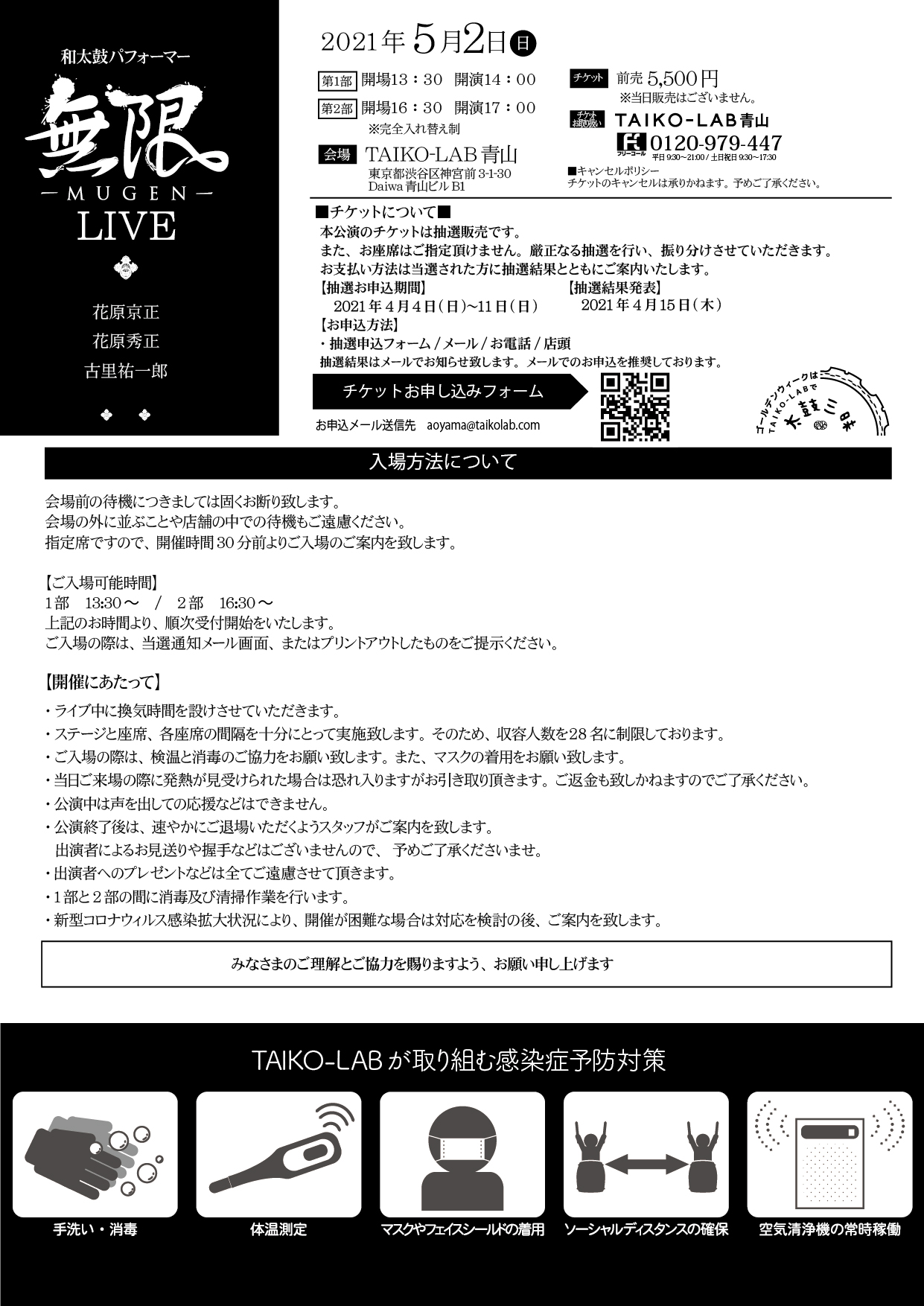 無限ライブ | ❶陸奥(みちのく)ワークショップ ❷東京五輪音頭2021ワークショップ |