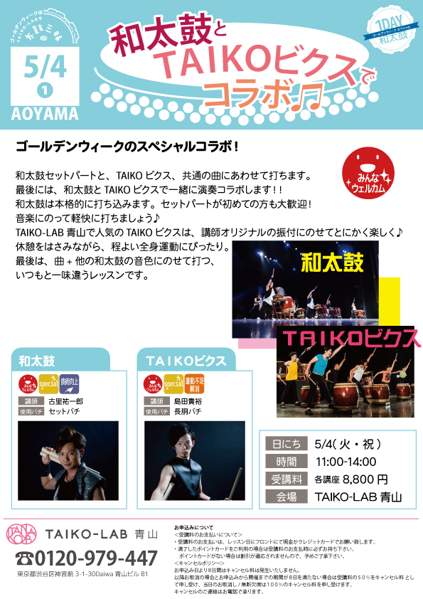 5/4(火・祝)❶和太鼓とTAIKOビクスでコラボ♫