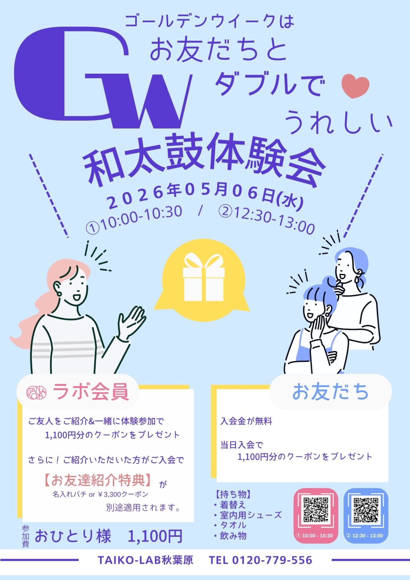 【秋葉原】ゴールデンウィークはお友だちとダブルでうれしい!和太鼓体験会実施