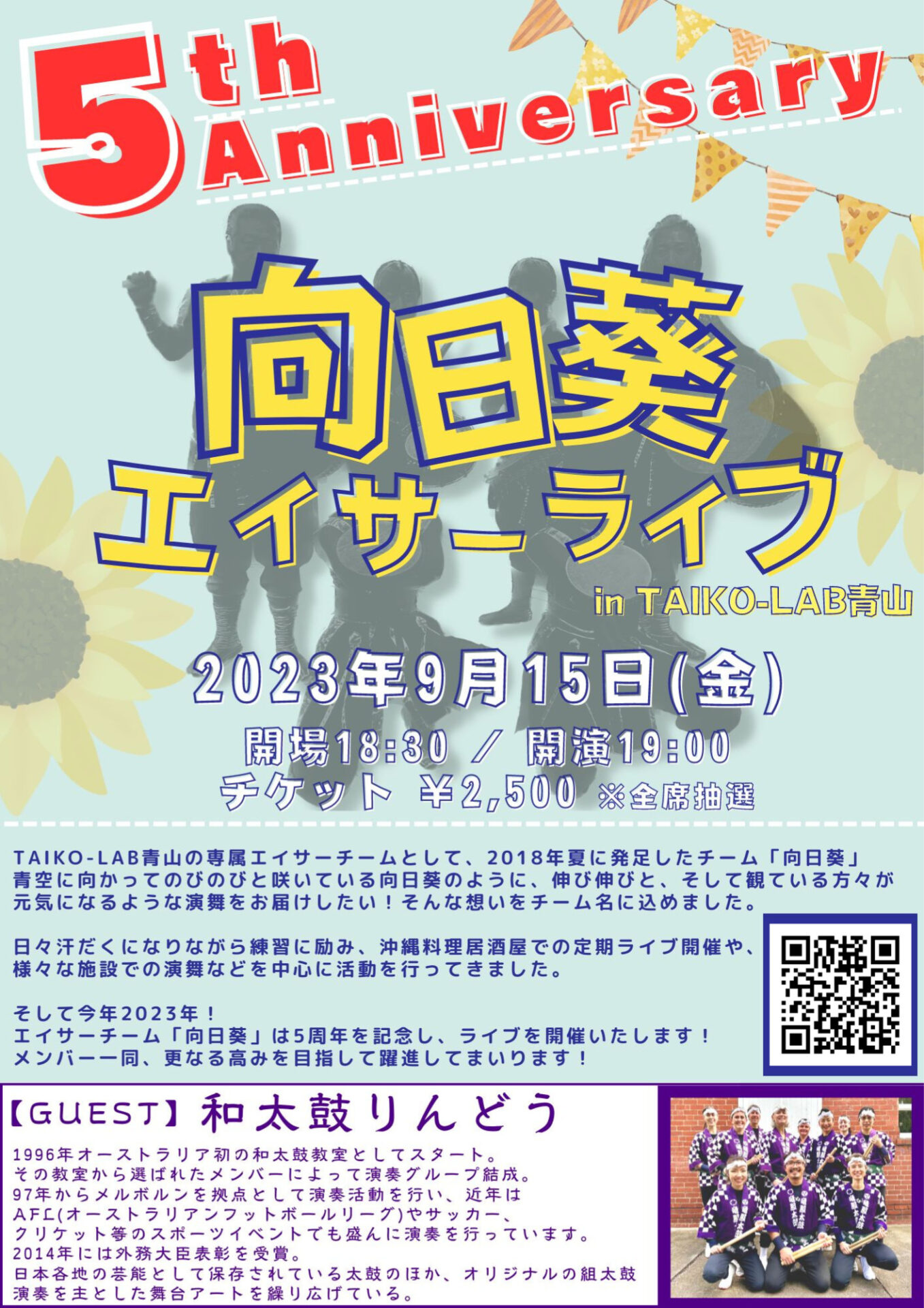 2023年、エイサーチーム向日葵は5周年を迎えたことを記念してライブを開催します。