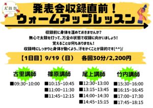 【発表会収録直前!青山開催ウォーミングアップWSのご案内】