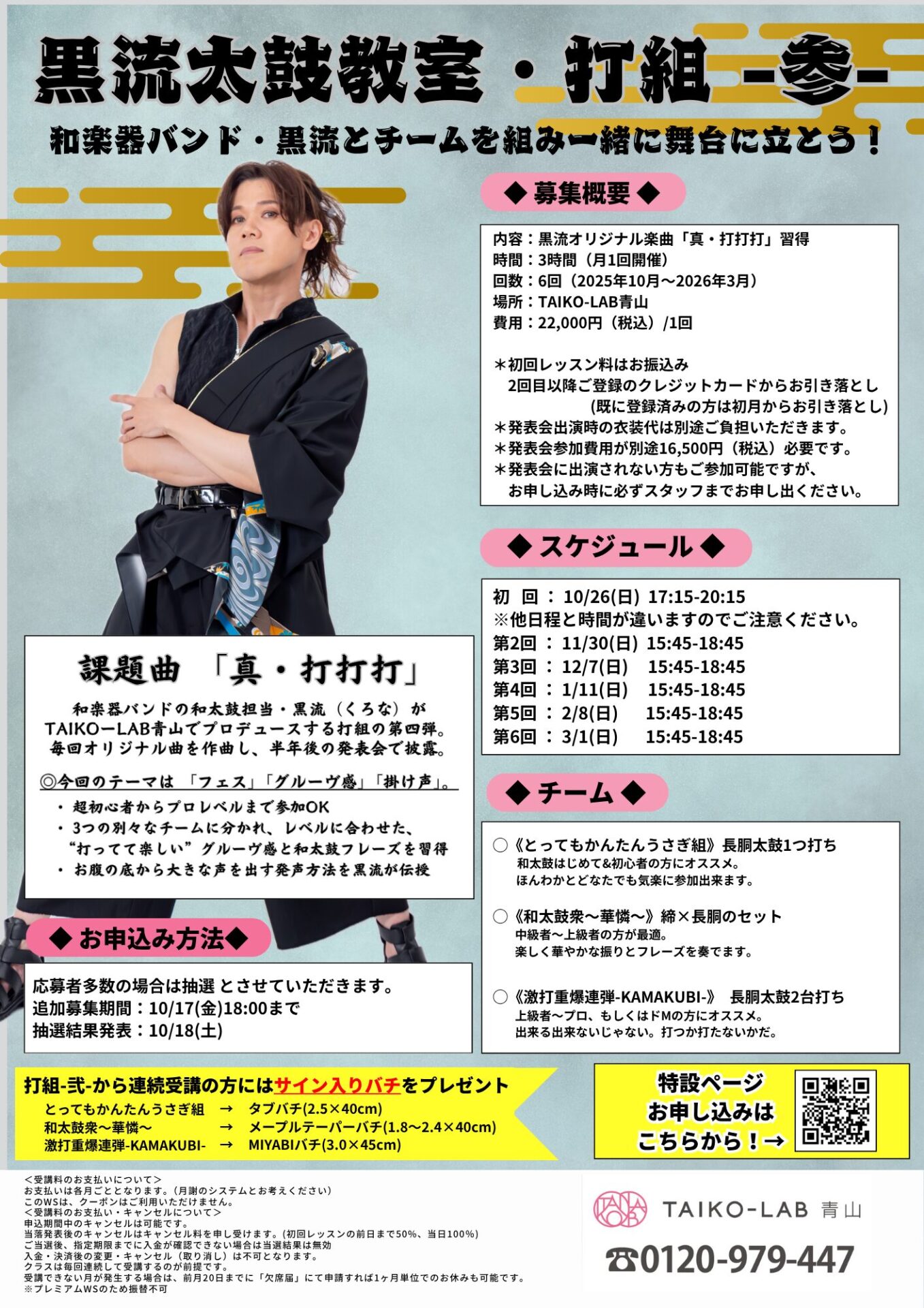 和楽器バンド・黒流と舞台に立つ!【黒流太鼓教室・打組-参-】参加者募集!