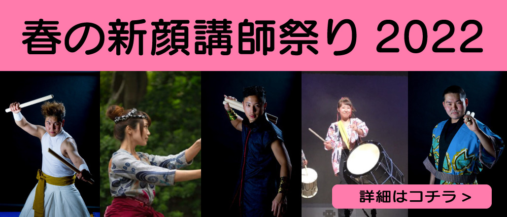 | 4/19(火) 田中 | 春の新顔祭り 和太鼓小僧 田中杏平から教わる 締×長 2点セット打ち | 17:00-18:30 | セット | 春の新顔祭り開催します! 普段青山店でレッスンをしていない講師が青山店に登場します! もちろん青山会員ではない方も参加できますよ★ 今回は和太鼓小僧「田中杏平」講師が担当します♪ ※振替OK | 90分 | 5,500円 | 田中杏平 | セットバチor締バチ |