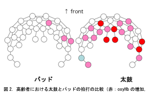 TAIKO-LABは、和太鼓の演奏が特に高齢者の前頭前野の血流を活性化させる研究結果を大学との共同研究にて得ています。