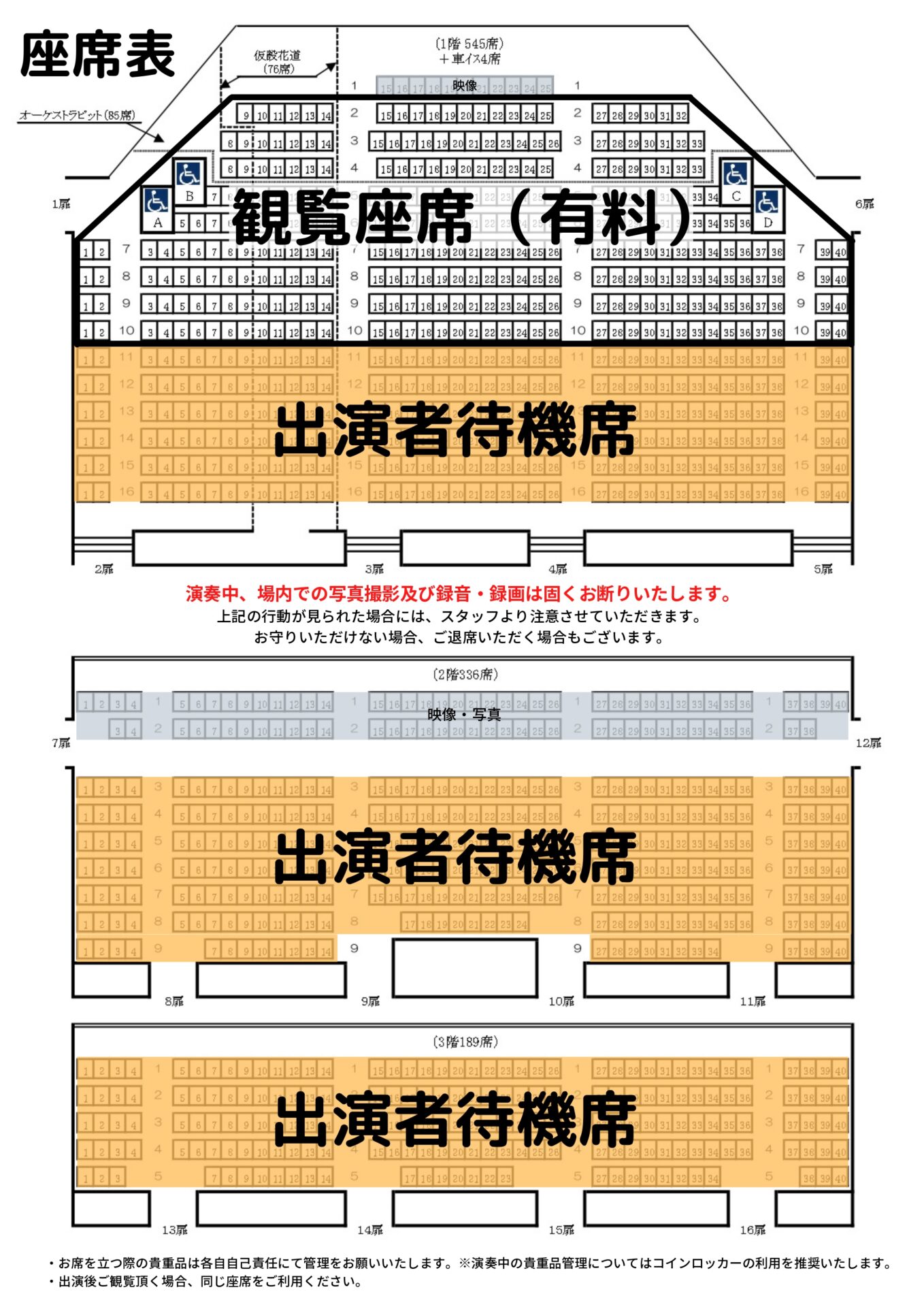 出演日に観覧する場合は、一日通して同じ座席をご利用くださいますようお願いいたします。